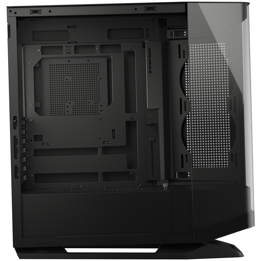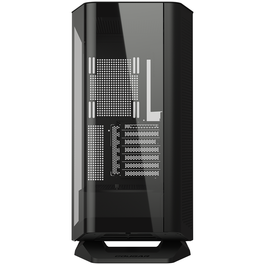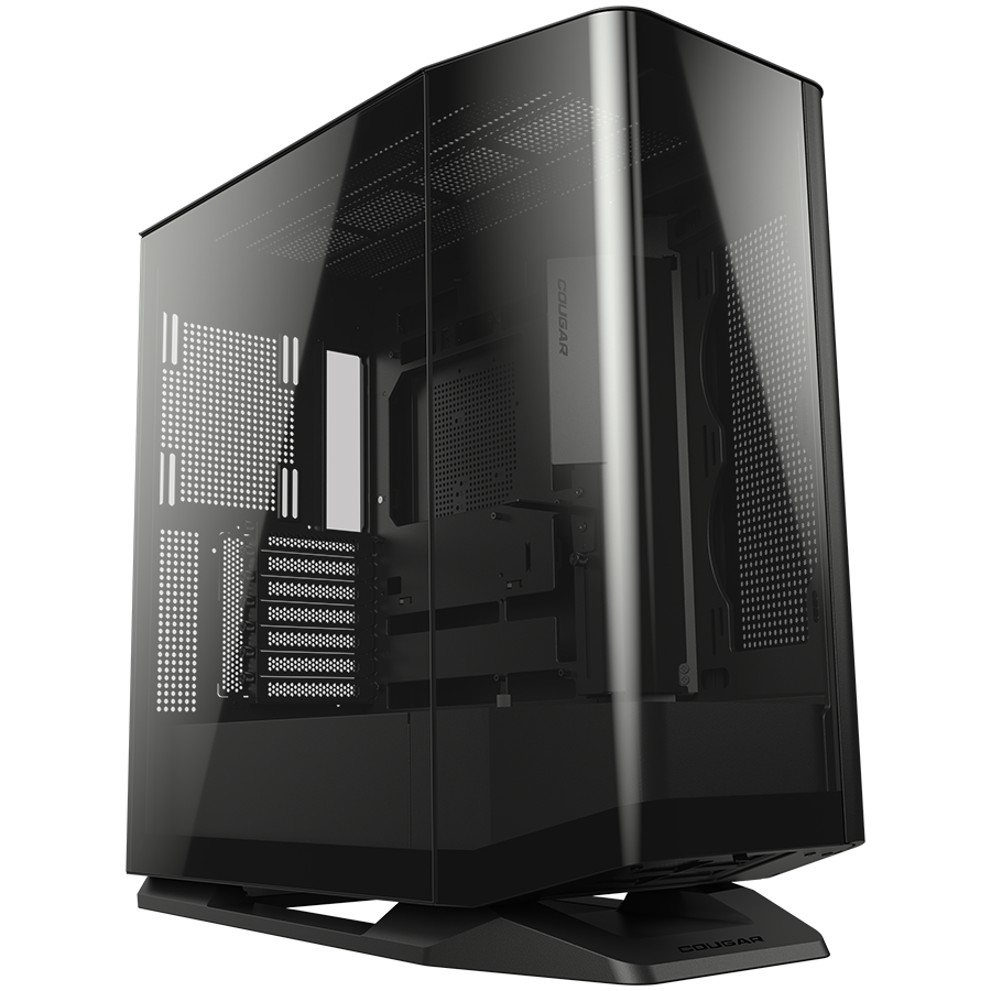 Obudowa Cougar FV270 RGB zachwyca nowoczesnym designem z zakrzywionego szkła hartowanego, które tworzy efektowną, niemal bezramkową ekspozycję wnętrza. Inspiracja geometrią pryzmatu pozwala osiągnąć pełną przejrzystość i wyeksponować podzespoły z każdej strony – to nie tylko obudowa, to scenografia dla Twojego komputera.