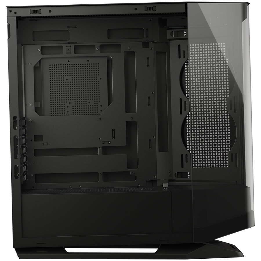 Wnętrze obudowy zostało zaprojektowane z myślą o maksymalnej personalizacji. Dostępna opcjonalnie platforma obrotowa umożliwia eksponowanie ulubionych gadżetów lub figurek – to nie tylko komputer, ale i Twoja osobista ekspozycja.
