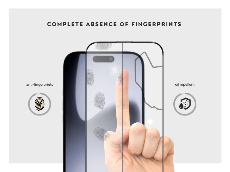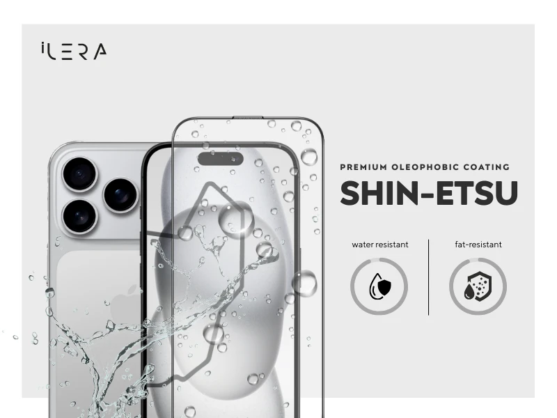 Powłoka oleofobowa (Shin-Etsu, fluoropolimer 10 nm) – ultracienka japońska warstwa chroniąca przed odciskami palców i smugami, utrzymująca czysty i gładki ekran nawet po tysiącach dotknięć.