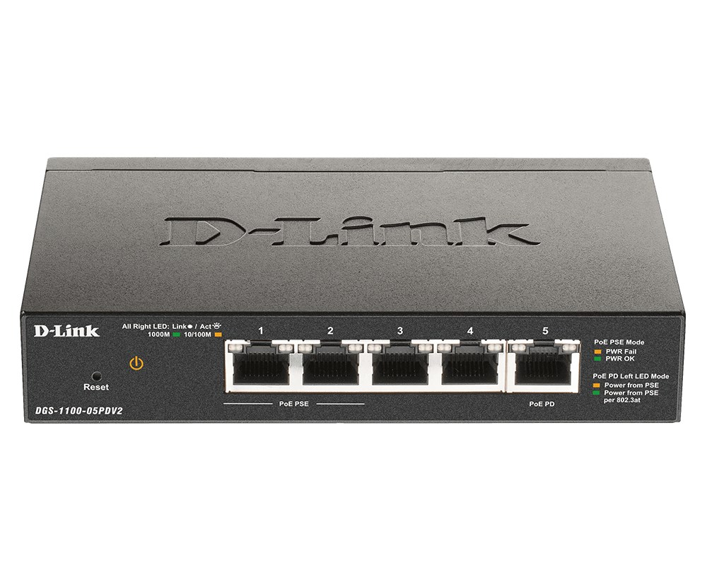 D-Link DGS-1100-05PDV2 łącza sieciowe Zarządzany Gigabit Ethernet (10/100/1000) Obsługa PoE Czarny