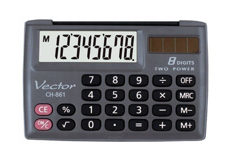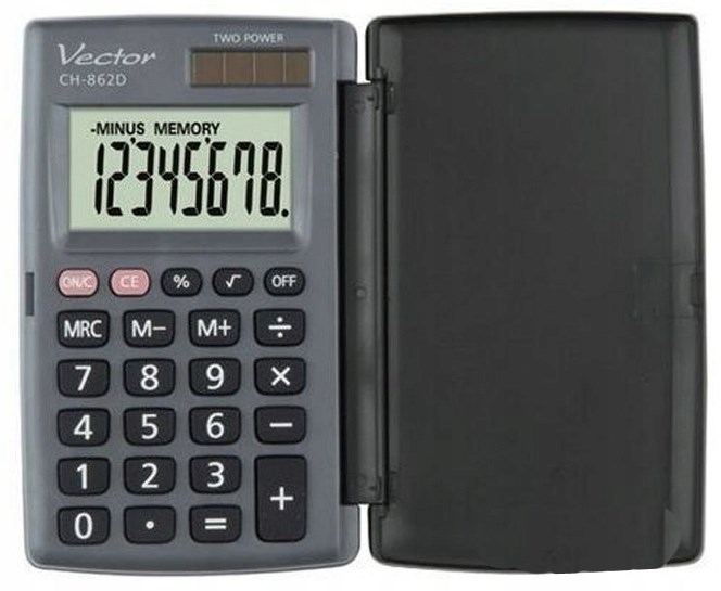 Vector Kalkulator kieszonkowy z klapką KAV CH-862D, szary