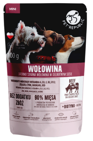 PET REPUBLIC Mini Drobno siekana wołowina - mokra karma dla psa - 100 g