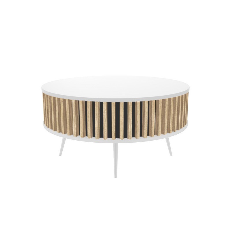 Stolik RONDA 90 biel, lamele dąb