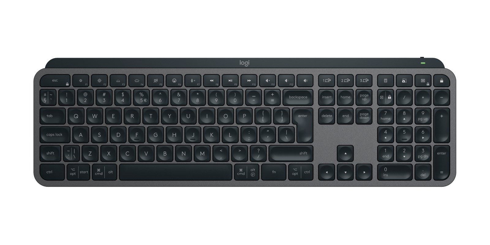 Logitech 920-010780 klawiatura Biuro RF Wireless + Bluetooth QWERTY Amerykański międzynarodowy Grafitowy, Szary