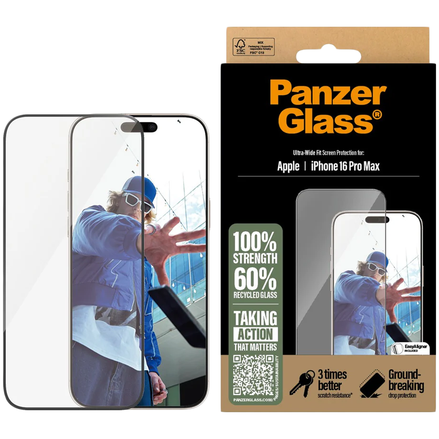 PANZERGLASS Protector iPhone 16 Pro Max, Ultra-Wide Fit