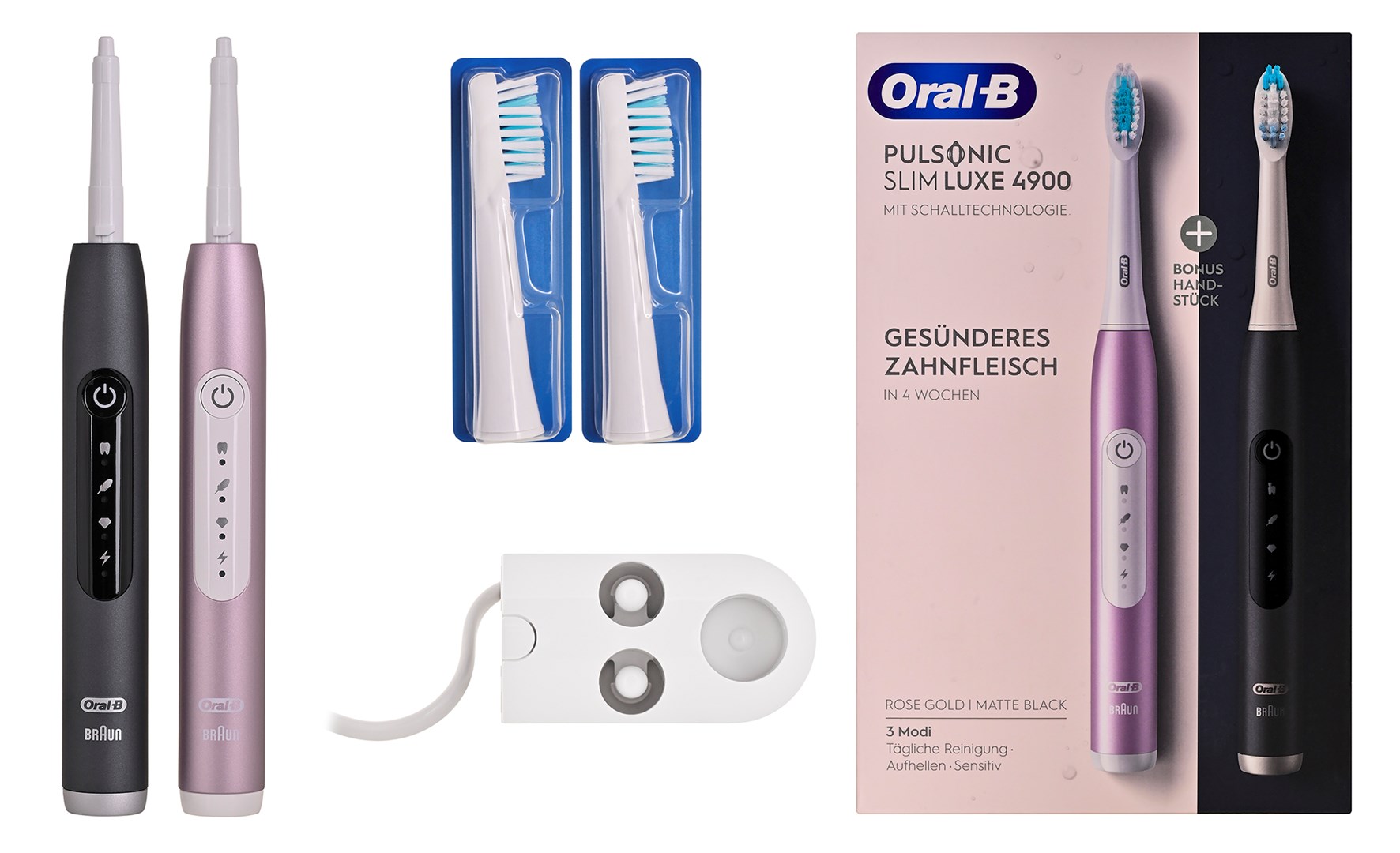 Szczoteczka elektryczna BRAUN Pulsonic Slim Luxe 4900 srebrno/różowa z 2 uchwytami